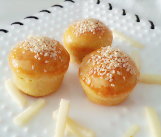 • Bir fincan suya bir çimdik zerdeçalı karıştırıp fırça ile hamurların üzerini hafifçe nemlendirip susam dökeriz.